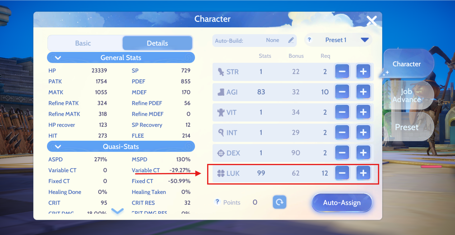 How to get >160+ LUK: